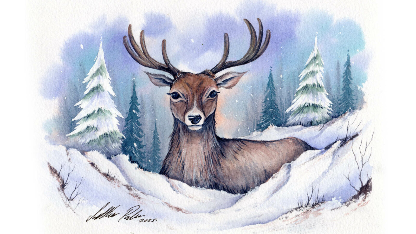 08/11/2024 timer 01:32:06 Natural Watercolours Episode Forty – Stags In A Winter Woodland View lesson