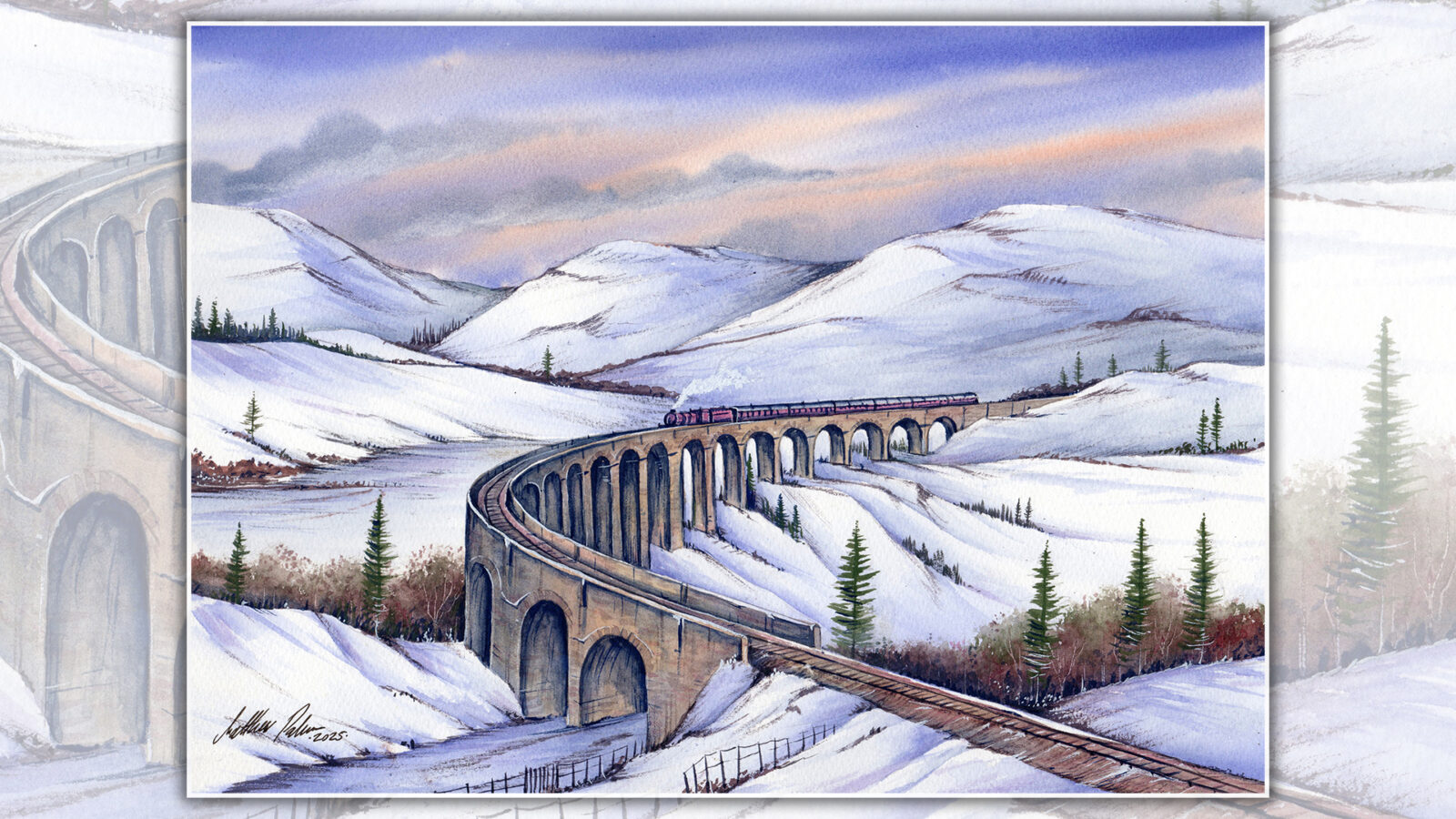 22/12/2025 timer 03:09:46 Natural Watercolours Episode Forty Four – A Snow Scene, Featuring The Glenfinnan Viaduct View lesson