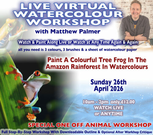 Live Virtual Watercolour Workshop With Matthew Palmer. Sunday 26th April 2026 – Special One-Off Animal Workshop £12.00 View Workshop