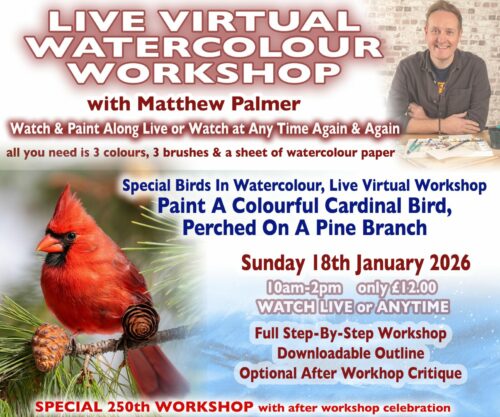 Live Virtual Watercolour Workshop With Matthew Palmer. Sunday 18th January 2026 – SPECIAL 250th WORKSHOP £12.00 View Workshop