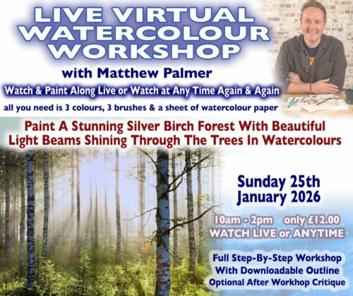 Live Virtual Watercolour Workshop With Matthew Palmer. Sunday 25th January 2026 – Special Virtual Workshop £12.00 View Workshop