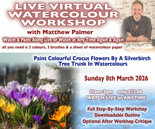 Live Virtual Watercolour Workshop With Matthew Palmer. Sunday 1st March 2026 – Special Virtual Workshop £12.00 View Workshop