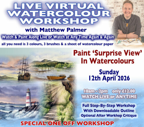 Live Virtual Watercolour Workshop With Matthew Palmer. Sunday 12th April 2026 – Special One-Off Workshop £12.00 View Workshop