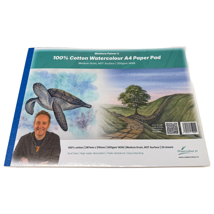 Limited Edition – NEW & EXCLUSIVE – 30 sheet pad of Matthew Palmer 100% cotton A4, watercolour paper 300gsm/140lb medium grain. with free video lesson worth £14.99