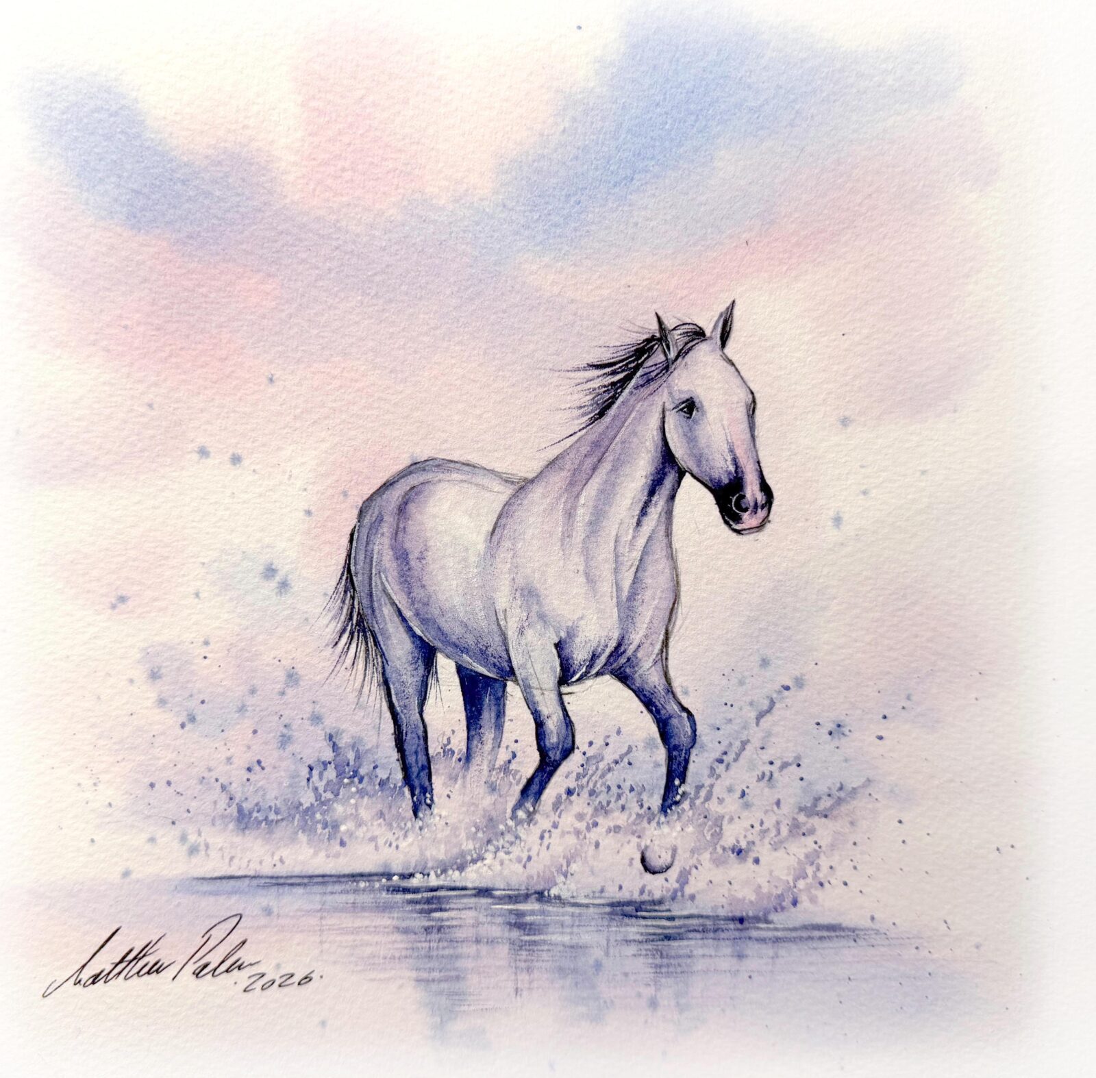 Paint A Majestic White Horse By The Sea In Watercolours – Chinese New Year Special