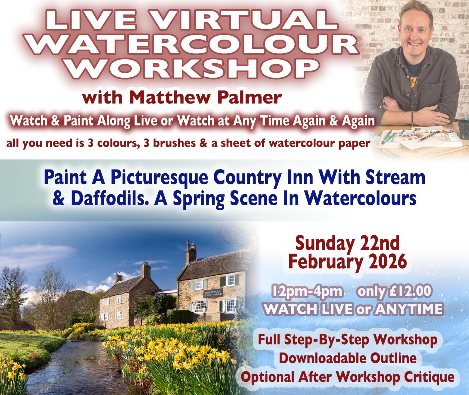 Live Virtual Watercolour Workshop With Matthew Palmer. Sunday 22nd February 2026 – Special Live Workshop