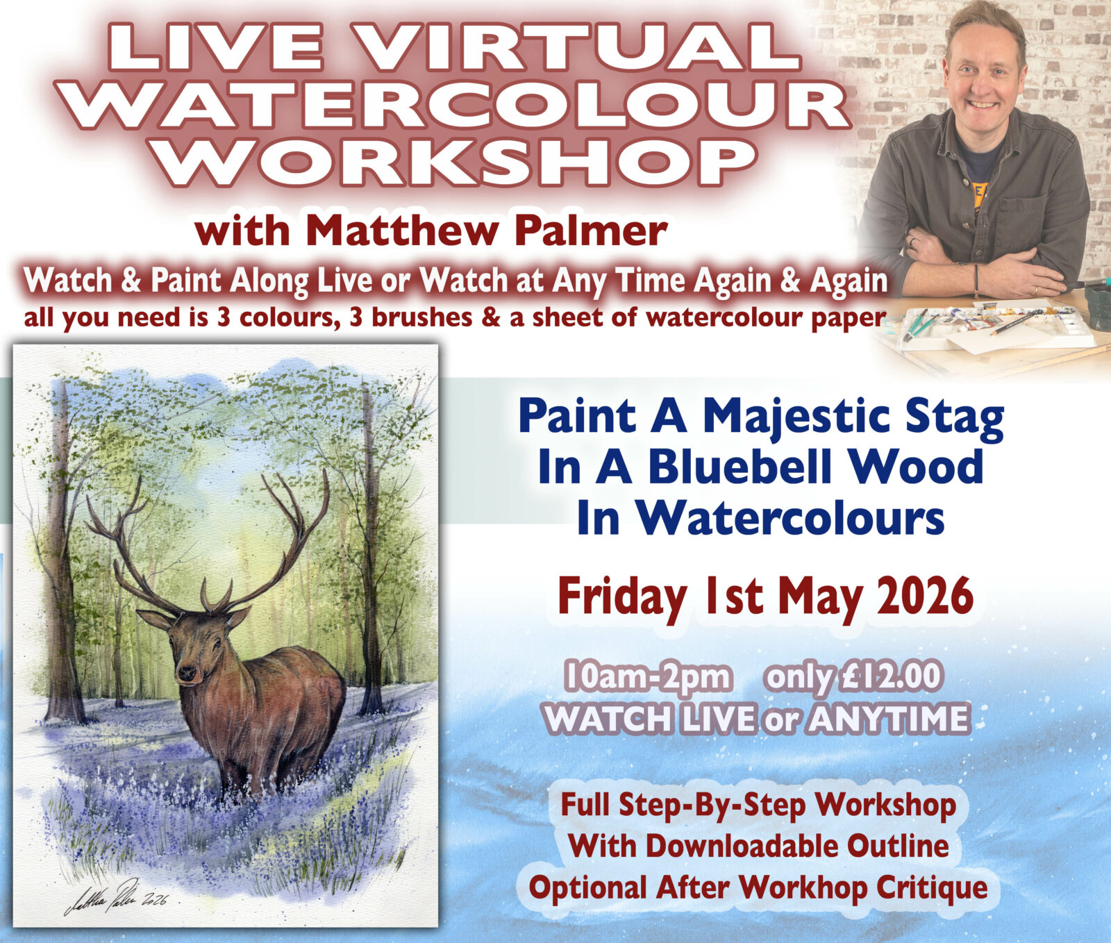 Live Virtual Watercolour Workshop With Matthew Palmer. Sunday 26th April 2026 Special Live Workshop