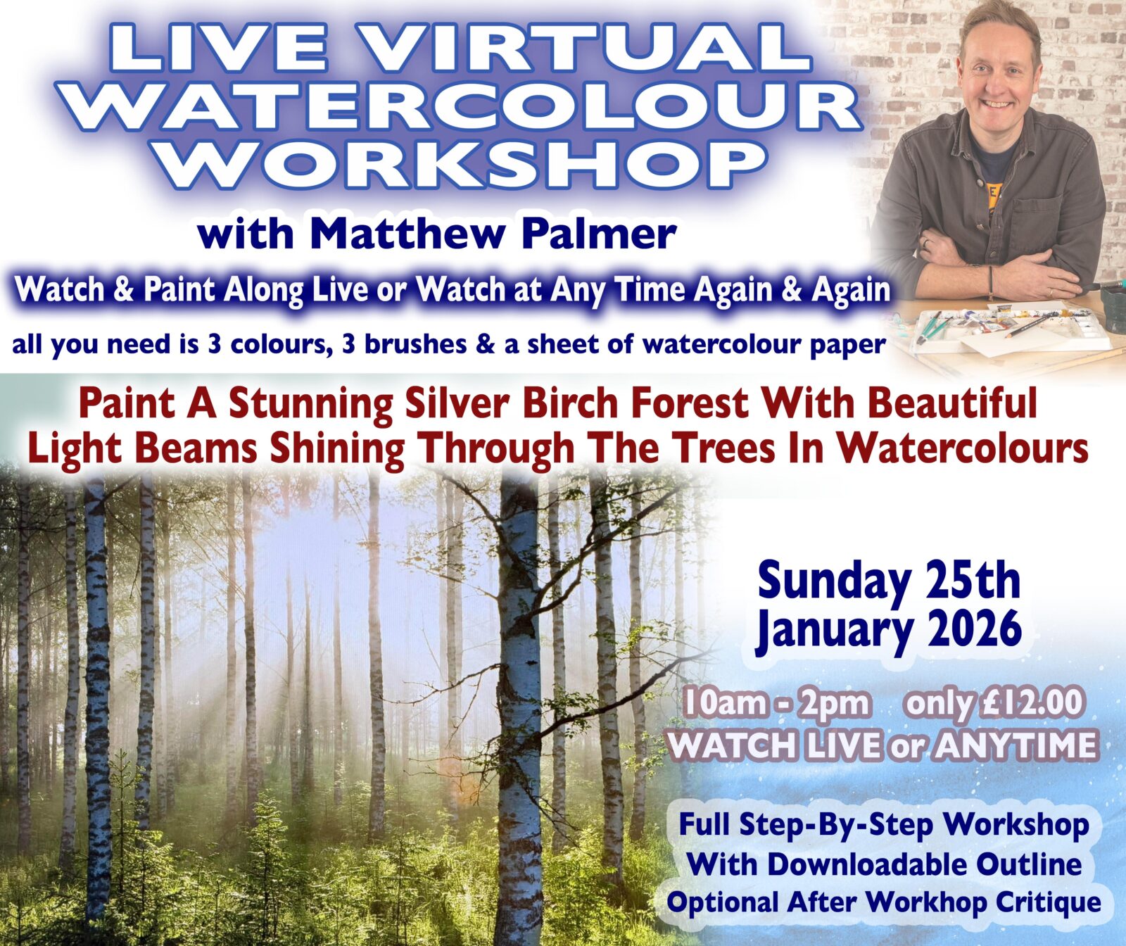 Live Virtual Watercolour Workshop With Matthew Palmer. Sunday 25th January 2026 – Watch Live Or Anytime, Keep Forever