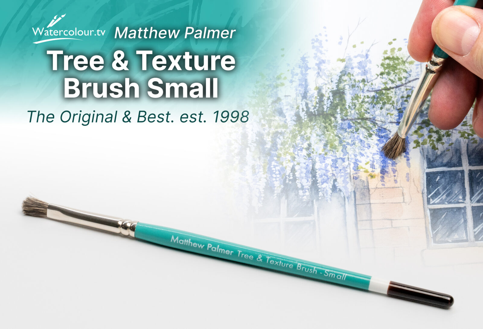 Learn to capture trees and textures the Matthew Palmer way with the Small Tree and Texture Brush. Made from natural hair, the ideal material for capturing the rough textures of trees and foliage. The uniquely shaped head of the brush offers a level of control and detail which make this brush an absolute must-have for anyone looking to emulate Matthew’s unmistakeable watercolour style, or simply enhance their tree and texture painting!