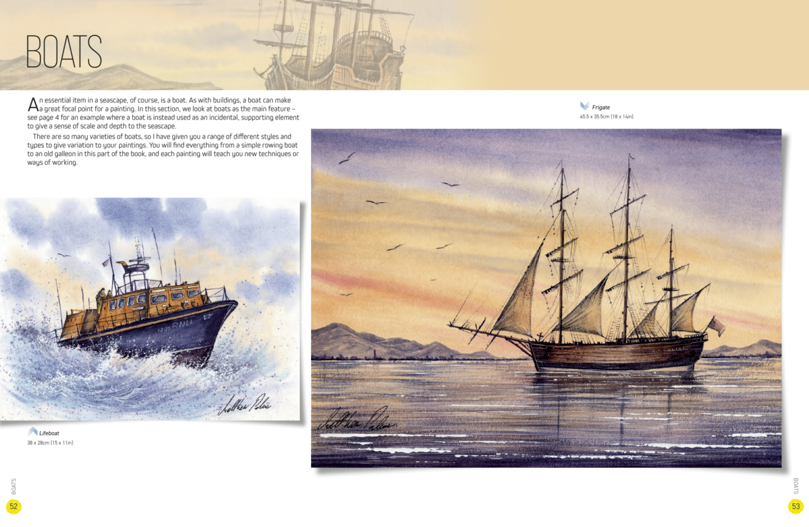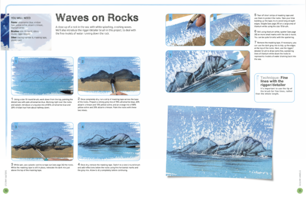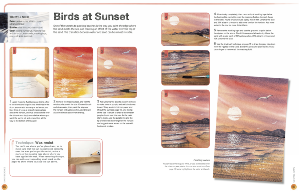 - At the end of the book discover 3 larger scale finished paintings that demonstrate how to integrate the techniques you’ve learned into vibrant and inspiring seascapes; these complete paintings also have an accompanying actual-size tracing.