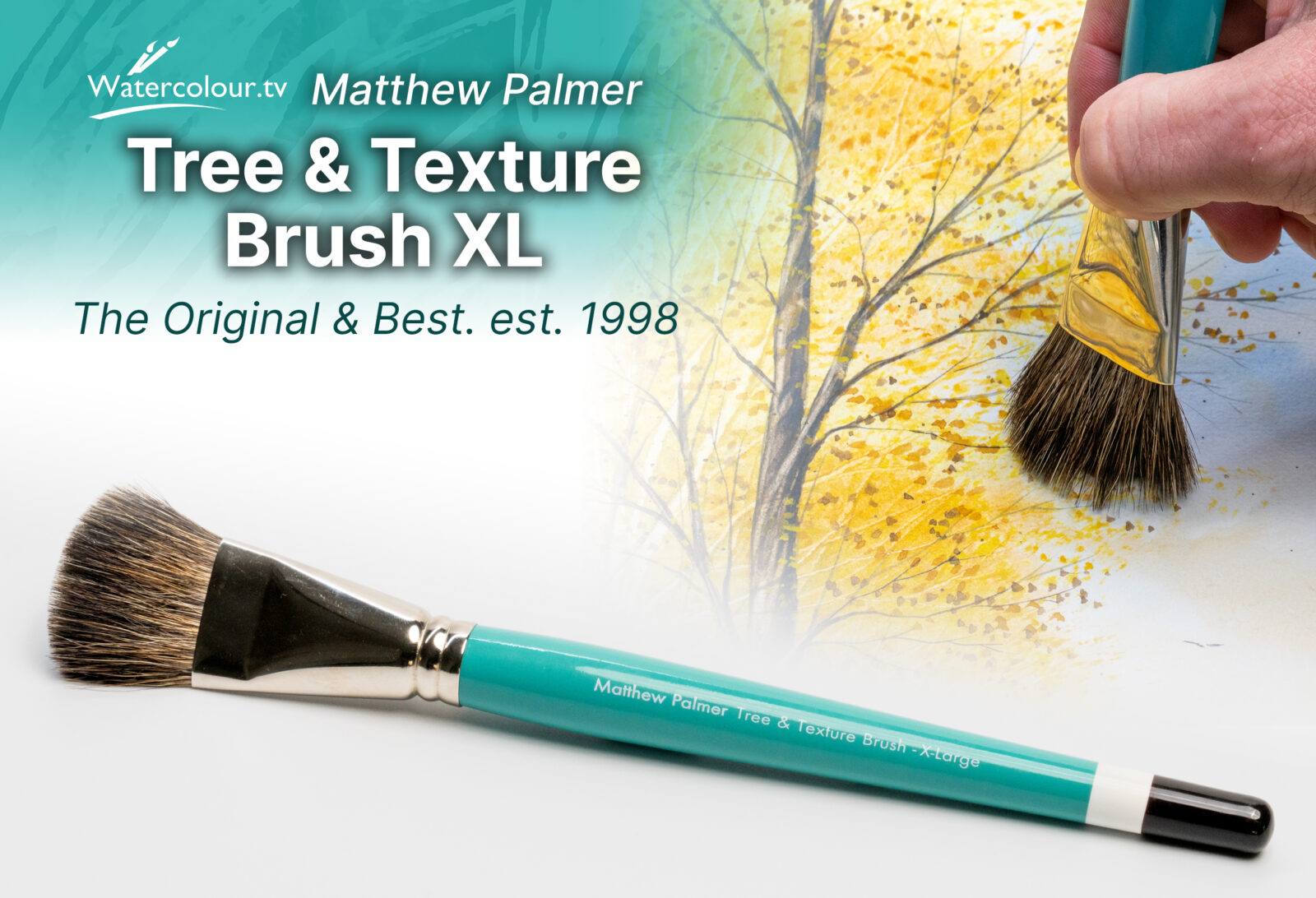 Matthews new XL tree & Texture brush is great for watercolours and opaque mediums, its soft natural hair mixture is perfect for the effect of painting close up of large tree leaves, as well as grass effects running water, animal hair etc.